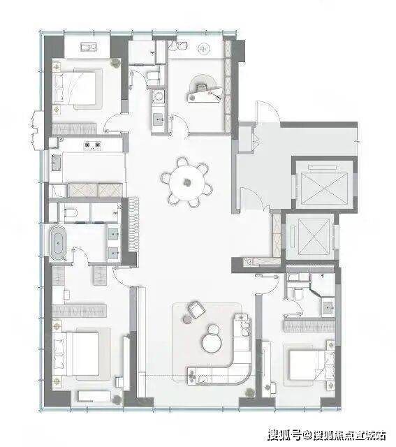 大平层:190㎡(四房两厅三卫)、220㎡(四房两厅三卫)、249㎡(四房两厅三卫)