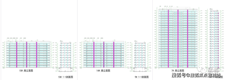 项目7/9/10/14#的初步户型平面图也首次曝光,其中9/10/14#为10F洋房户型,全部都是4房3卫改善大面积。