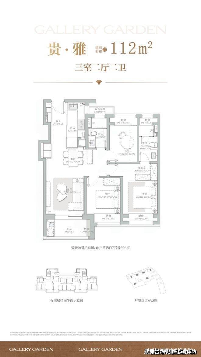 项目舍弃了传统逼仄的百平三房,将最小面积提升到了建面约112㎡,而这12个平方的提升,让整体户型的空间尺度感达到了新的高度。
