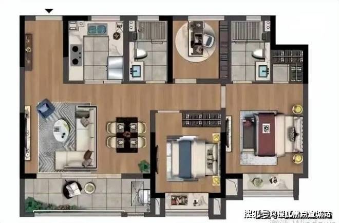 105㎡户型(3室2卫)特点: