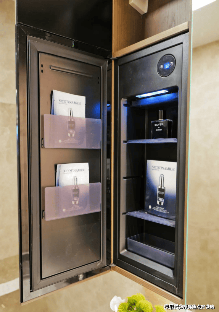 尤其在主卧卫生间中,甚至为女主人准备了美妆冰箱,可以存放需要冷藏的面膜or护肤品!