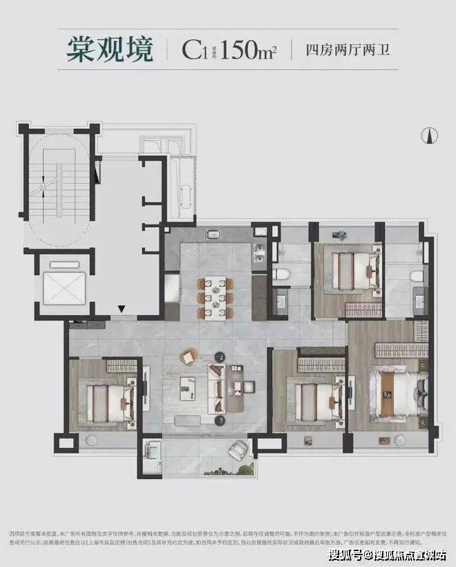 建面约150㎡ 四房两厅两卫