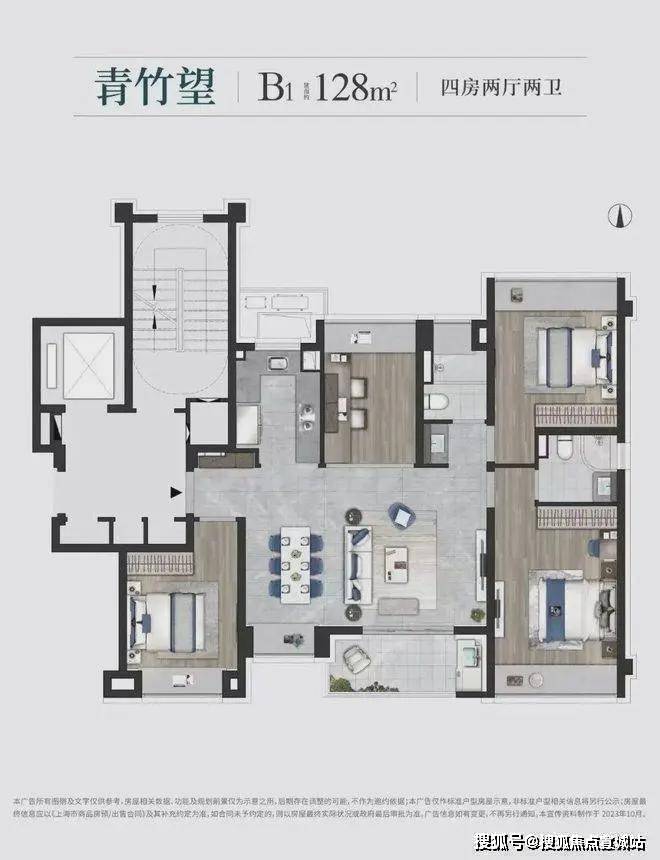 建面约128㎡ 四房两厅两卫