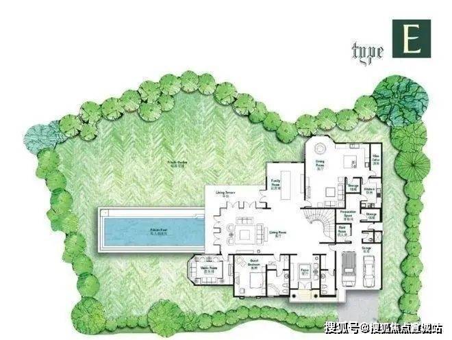 每户占地约1.5-2.5亩,每户均有大面积花园
