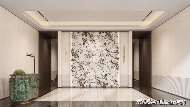 出电梯后的空间不仅可以作为私人入户玄关,让你告别空间共享,私密性拉满的同时还增加了隐形实用面积。