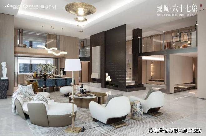 跃象空间的客厅以高挑的天花板和复古金属吊灯为焦点,角落的雕塑艺术品营造出一种历史沉淀的美感.绿城六十七象售楼处电话:400-8558-334