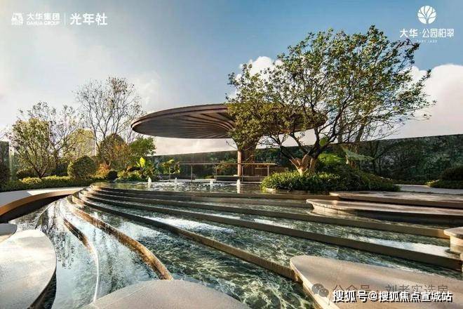 并且将中心场地抬高1米,在水系池底通铺1300多片的PRADA绿石(仿石砖)、精选斜飘乌桕、造型紫薇等名贵树种...