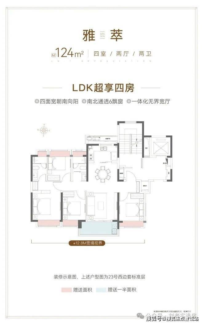建面约124㎡的4房2卫户型,通常来说是紧凑型的户型。