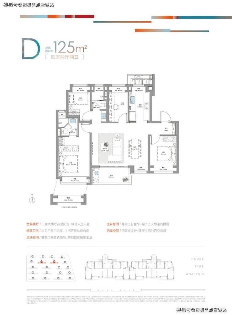 125㎡大横厅四房**:四开间朝南,打造家庭互动中心.