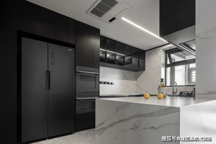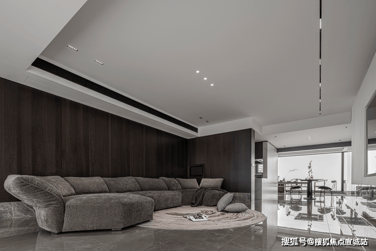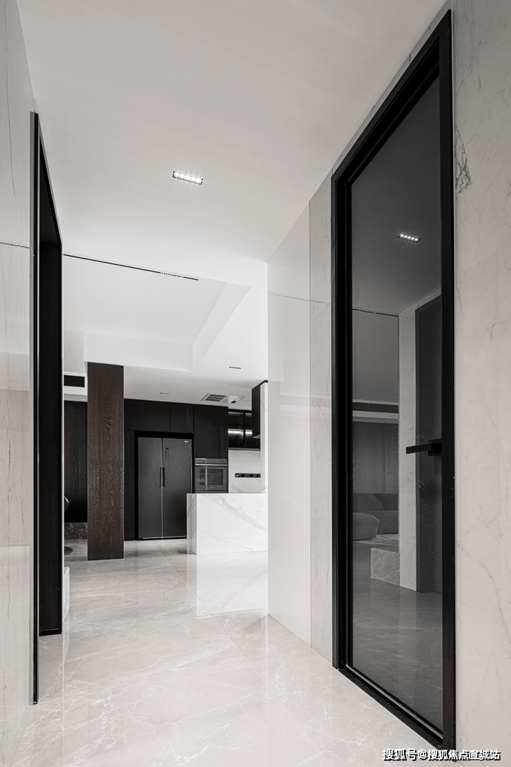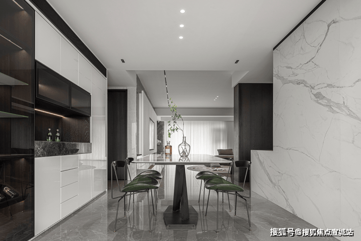 灰白色的整体调性,营造出安静惬意的居家感受。客厅采用爱马仕灰大理石,细腻的石材纹理质感,层层递进,开启视觉延展。