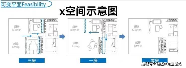 这个户型除了三开间朝南,再加上“3个飘窗+双面阳台系统”,采光通透性非常高优势之外,业主还可根据家庭结构与生活需求,灵活将空间定制为3房或者2+1房。