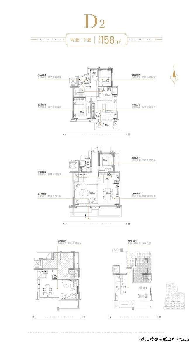两叠产品亮点可谓非常突出,相较项目前期,稀缺性还将更胜一层!自然其吸引力也将更强!值得收藏!两叠下和两叠上均有双层地下室;下叠南花园,北面入户花园;上叠北花园,露台,坡屋顶空间。来看户型图: