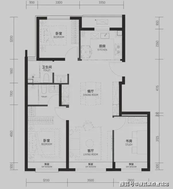每个空间都很方正,空间利用率很高,全屋全明格局,还有三个南向大飘窗~