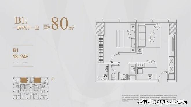 建面约80-88㎡,位于13-24F,客餐厅厨房都有功能更齐全