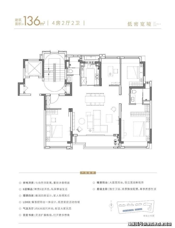 建面约136㎡6层洋房纯粹的亲地性和高得房率,既能满足三代同堂居住需求,也能保障私密性和居住体验感的提升;