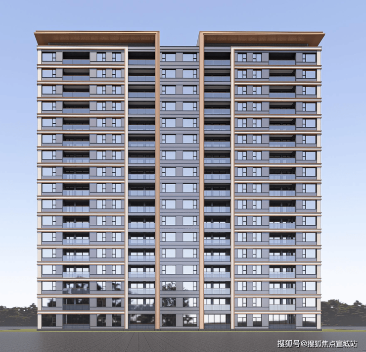 ◆现代立面:以大面积玻璃、香槟色装饰线条打造深灰色质感外立面,构建匠心美学范本。
