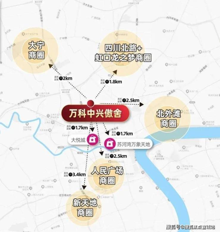 商业配套方面:项目一公里范围内就有虹口龙之梦及大悦城两大购物中心,且尤其是在大悦城二期开业的情况下,整体生活氛围充分提升,市中心的便捷生活触手可及。