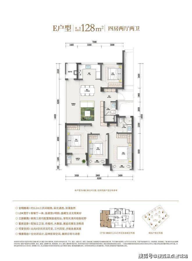 (128-139方四房户型,滑动查看更多户型图)