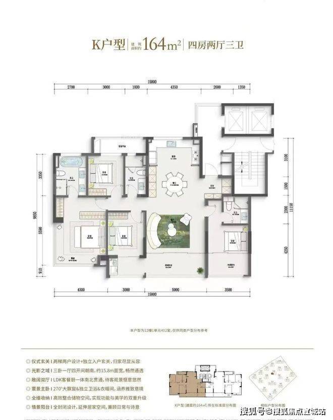 (162-164方四房户型,左滑查看更多)