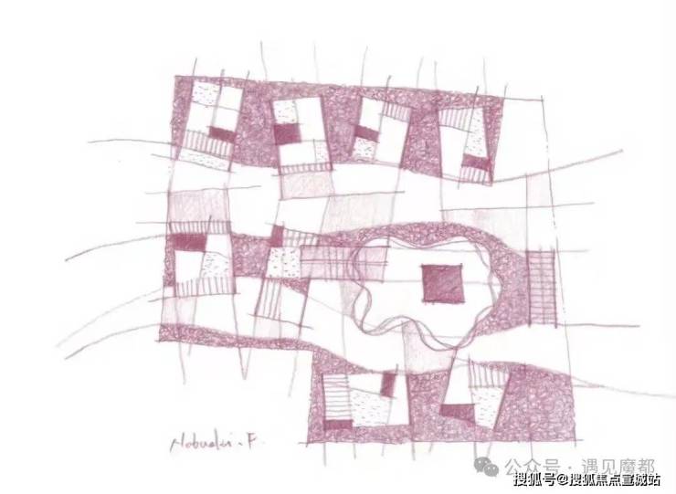 大师设计,亲绘手稿指导,团队大量的成本投入及探寻,收集各类精品石材,通过不同用材风格的组合,复刻出大师雕琢的组团理念