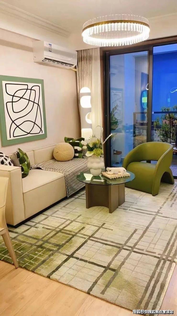 客厅外接南向瞰景阳台,不仅进一步增强了室内的尺度感,更为日常生活增添了一抹绿意与宁静。