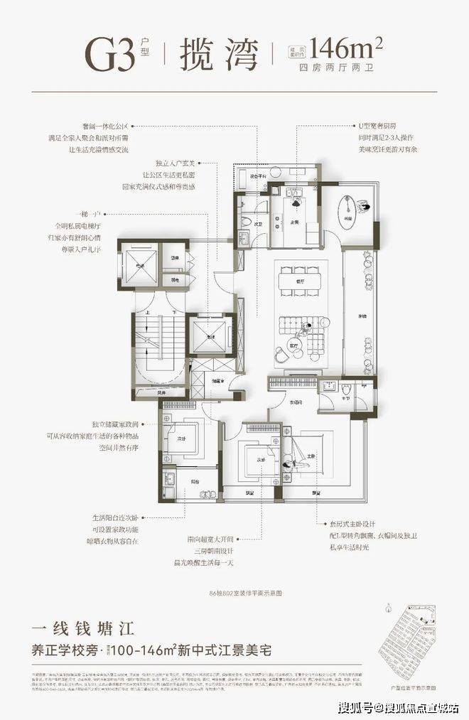 “类一梯一户”设计,私密性更好.带有LDKB超尺客厅,享有超尺度的瞰江视野,随手一拍,发在朋友圈都能让人投来羡慕的目光.