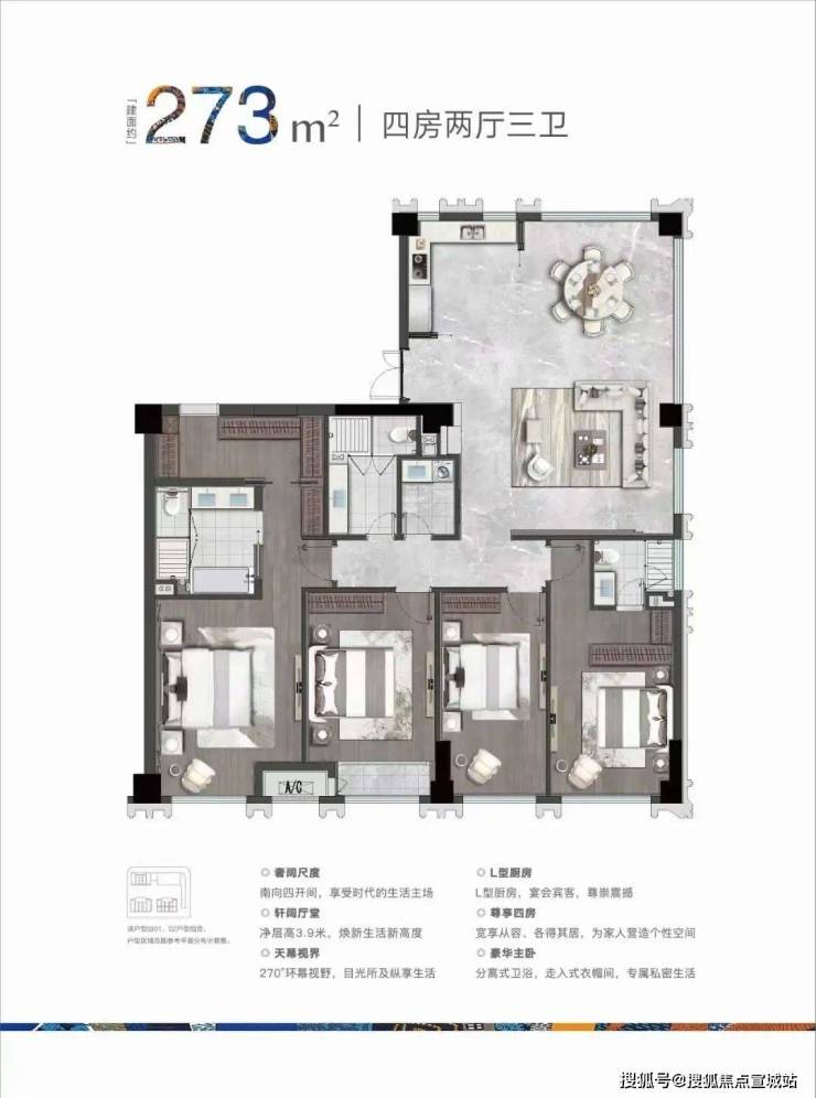 主力户型:118㎡(三居)、236-273㎡(四居/跃层)