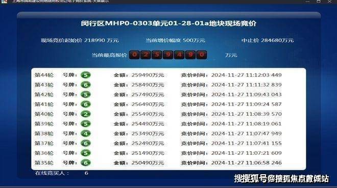 2024年11月27日,上海第七批次土拍首日,保利置业以约25.95亿元竞得闵行区MHP0-0303单元01-28-01a地块,溢价率约18.5%,折合楼板价48665元/㎡。