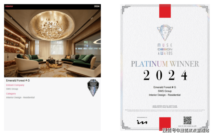 绿宝园·翡梵在2024年美国MUSEDesignAwards第二季度评选中,荣膺最高荣誉铂金奖与金奖,这一殊荣在全球范围内也实为罕见.MUSEDesignAwards由国际奖项协会(InternationalAwardsAssociate)主办,是全球最具影响力和权威性的设计赛事之一,旨在遴选“设计缪斯”,表彰那些推动全球设计进步的艺术作品.在众多国际作品中脱颖而出,摘得铂金桂冠,足以彰显绿宝园·翡梵在全球设计领域的卓然视野和艺术造诣.