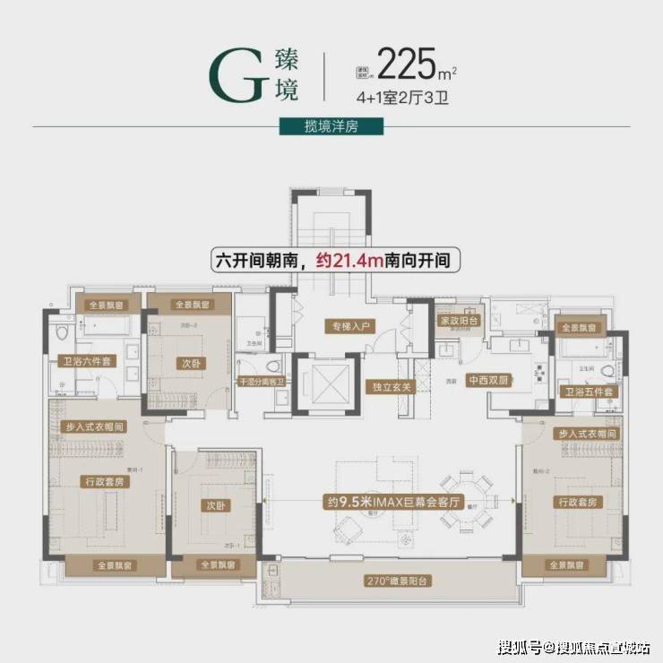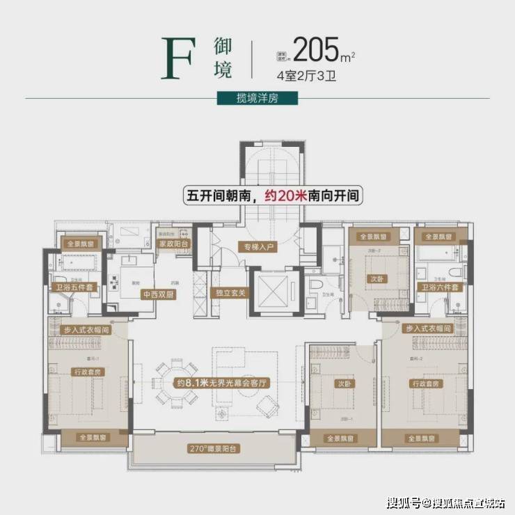 约20米南向五开间、约8.1米巨幕横厅、双奢适套房主卧、中西双厨,处处彰显豪阔领域。