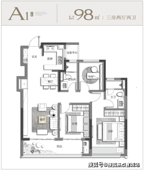 对于刚步入改善阶段的年轻家庭而言,即便预算有限,对家的空间与品质也绝不妥协,所以如何实现小面积也有大享受,成为核心诉求,而约98㎡户型恰好给出了完美答案。
