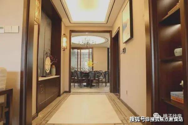 挑高扇形弧度造型、内置收纳玄关柜,与自然质感的材质虚实结合,绿植与灯光适度渲染,当走进门厅的刹那,便可领略出屋主不俗的品味.