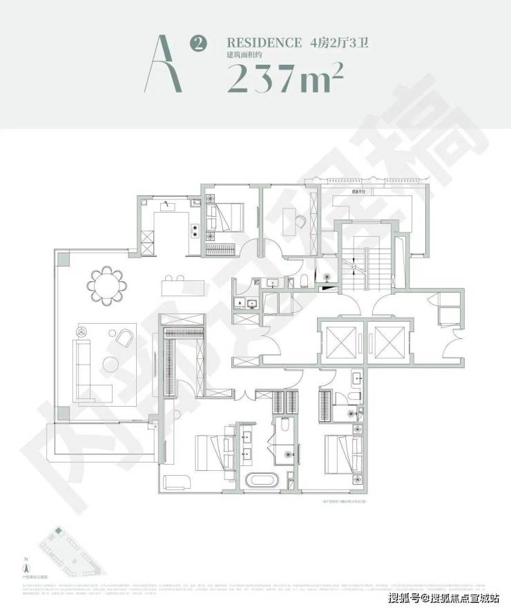 建面约129㎡四叶草4房神户型