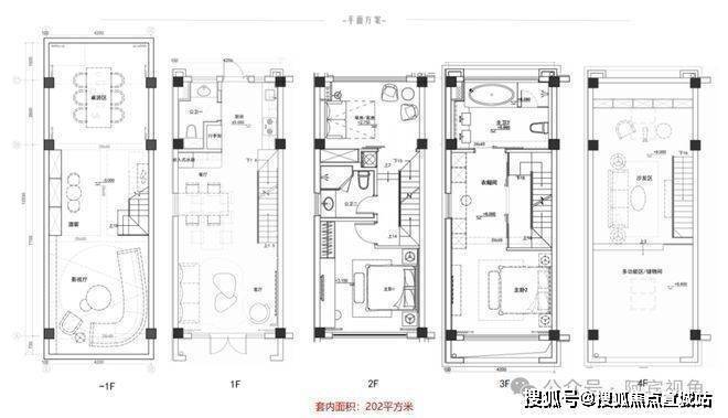 双拼户型平面布局(建筑面积180㎡,使用面积432㎡)
