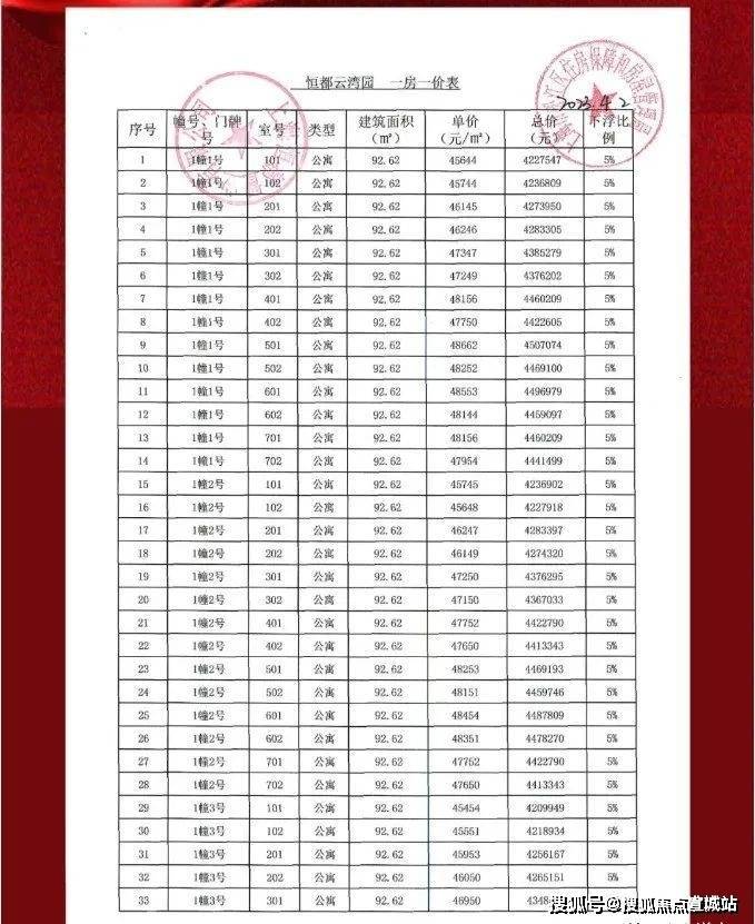 一房一价表及认购规则