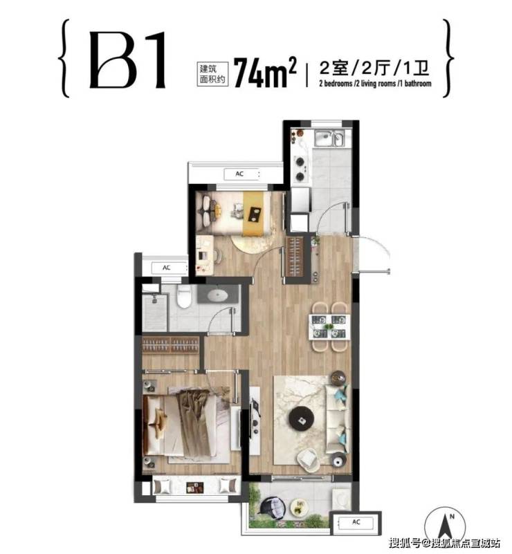 【建面约74㎡全明通透户型】