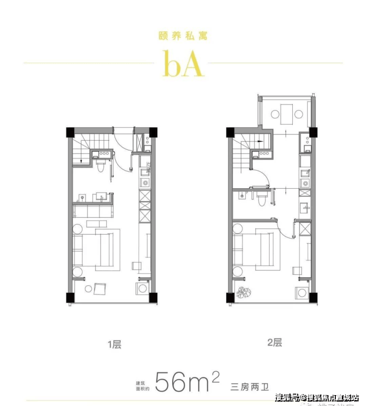最后这批房源,面积段约54—163㎡, 主力户型有约56㎡、84㎡两种,层高约4.78米。格局分为上下两层,大部分双层都带独立的厨房和卫生间,用途灵活。
