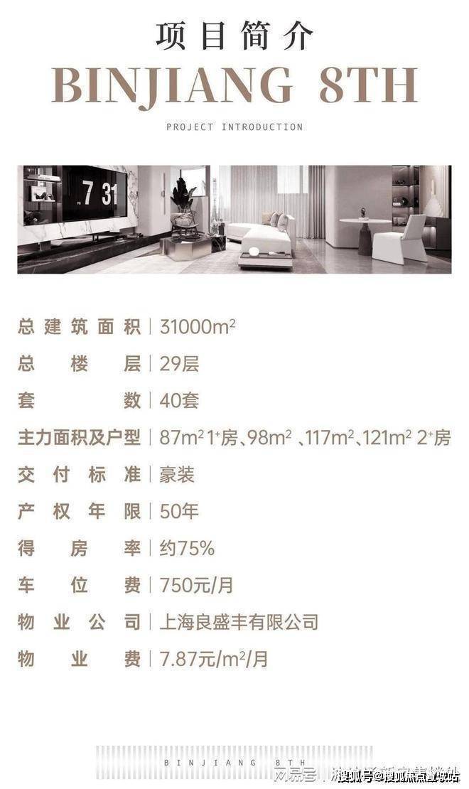 与汤臣一品/九庐为邻【滨江8号】建面约87~121㎡精装公寓