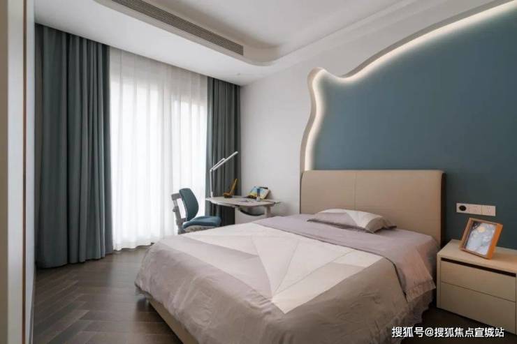 主卧延续着精致简约的基调,粗粝质地中藏着精密尺寸的计算,其纹理背后亦可感知到匠心工艺。在优越的山河景观之中,所有浮躁都会渐渐淡去。