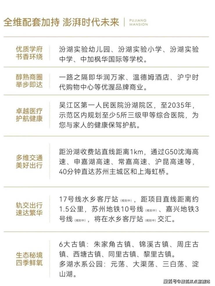 轨道交通:紧邻规划中的上海地铁 17 号线西延线 “水乡客厅站”,直线距离约 1.5 公里,未来可换乘苏州 S10 号线、嘉兴 3 号线。