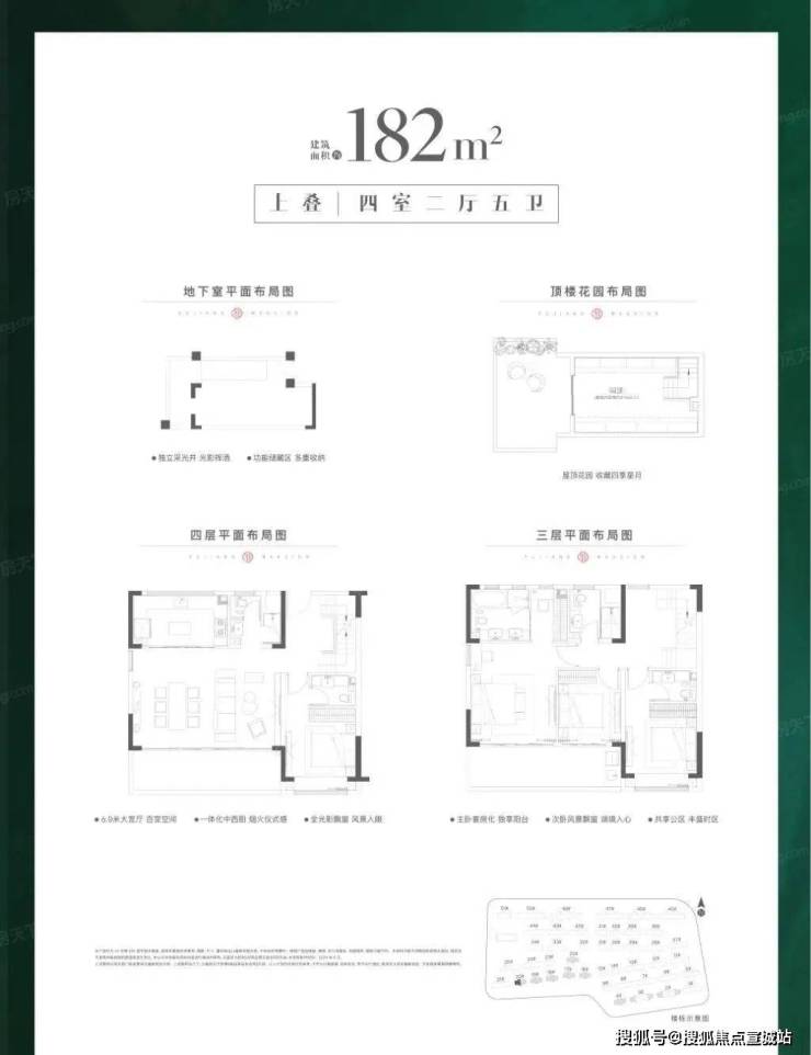 户型:有建面约 112-188㎡的 3/4 居室,包括 112㎡3 房 2 卫、128㎡4 房 2 厅 3 卫、142㎡4 房 2 厅 3 卫、148㎡4 房 2 厅 3 卫、182㎡4 房 2 厅 5 卫、188㎡4 房 4 厅 5 卫等户型。