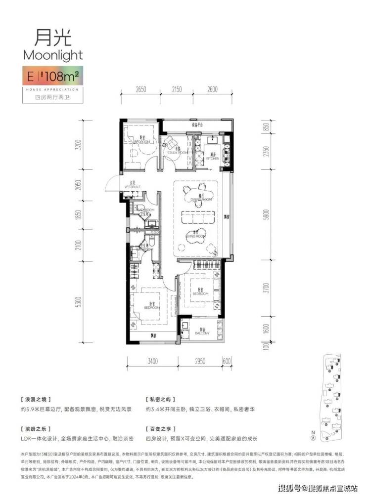 若三代同堂或二胎家庭,112㎡四房边套会是一个更经济实惠的选择。整体布局是在98㎡基础上增加了一个北向次卧,在保证各自有独立居住空间的同时还能保留书房这个“现代刚需”。由内到外都给出了绝对的诚意。