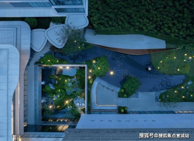 整体围合式布局,七幢轻盈时尚的建筑,点状而立,仿佛被包裹在约13000㎡的花园景致里,让建筑成为自然恰到好处的点缀;