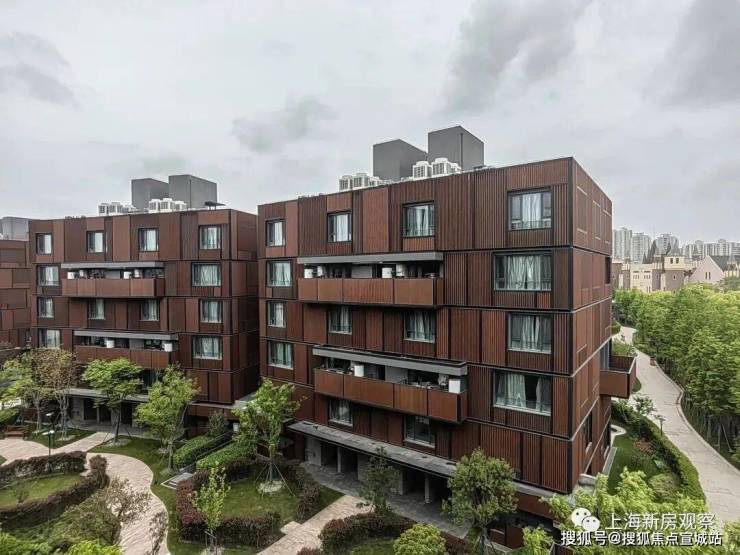 沁风雅苑一共由18栋6层的叠加组成,整体呈倾斜镜像状排列,外立面采用木色调,风格极为独特。