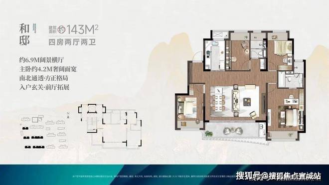 ✅6栋9-11F洋房,143㎡户型(四房两卫)、建筑面积169㎡户型(四房三卫);
