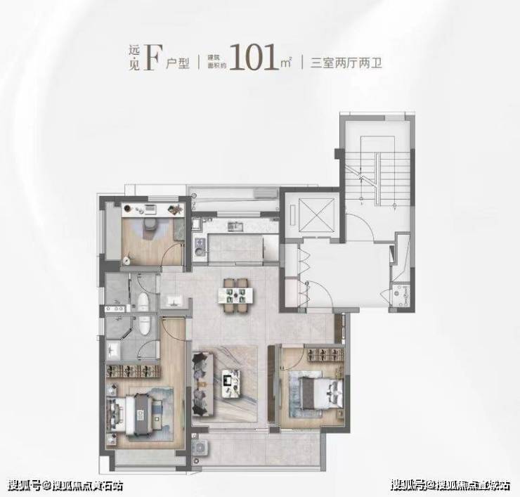 3月初加推128套房源,其中101平户型96套,叠加32套