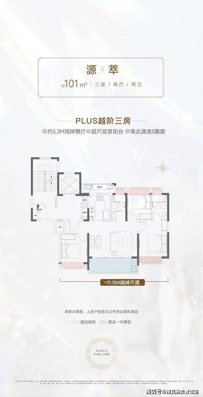 现场开放的是建面约101㎡三房拥有约5.3米横厅,一梯两户设计之外每个房间都设计有飘窗空间更大: