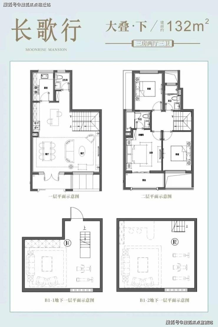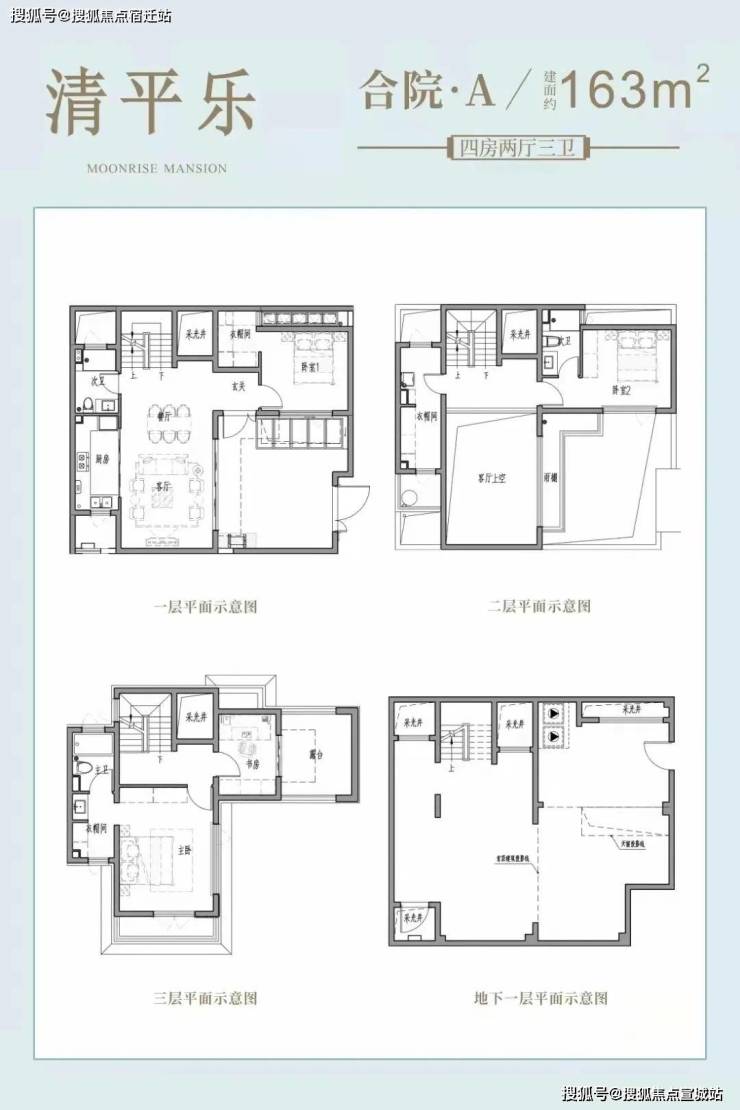 合院(毛坯):附带40-100㎡花园&地下室(层高5.3m),三楼有近15㎡露台。