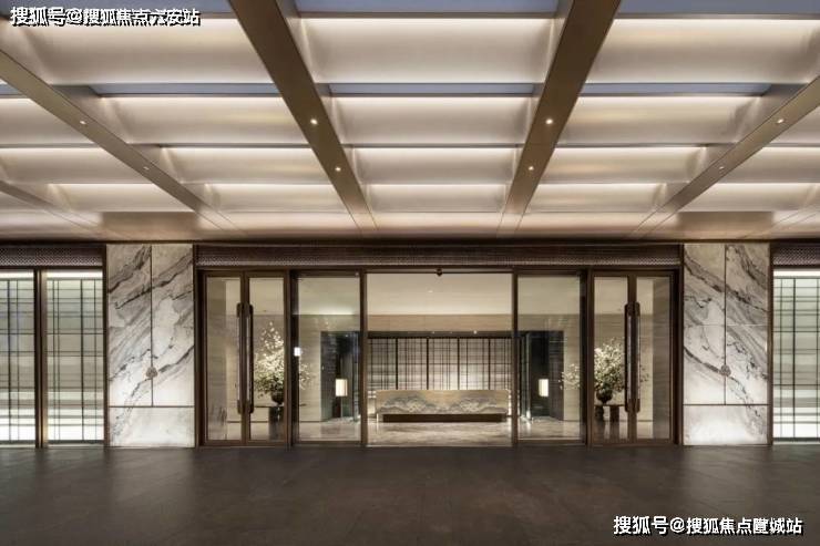 社区大堂采用黑色大理石地面,配以高级真皮座椅和半开放式休息区,营造出奢华感。带有中式元素的玻璃墙将休息区环抱于中,半开放式的结构增添了独特的东方韵味,让空间更具吸引力。细节处处体现品质,人们在此感受到舒适与优雅并存的氛围。