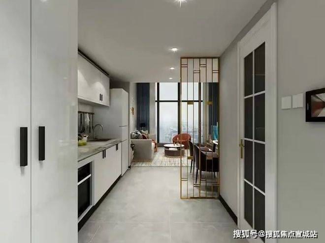 入户玄关处,左右两边的定制玄关柜在黑白的搭配下加上香槟色的栅栏隔断,便瞬间让人感觉到了一种高级轻奢感,又与之客厅隔开,层次丰富,简单大气